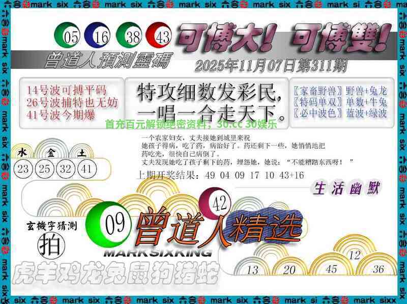 314期:男女二肖【男肖+兔鸡】开:發00准
